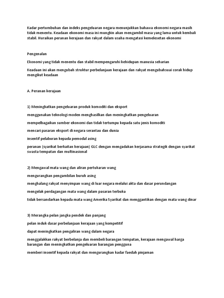 Hal ini dibuktikan melalui peningkatan akaun dagangan. Ekonomi negara yang mencatatkan pertumbuhan lebih kukuh 4.9 peratus pada suku kedua 2019 meskipun berdepan persekitaran mencabar menunjukkan daya tahan malaysia ketika ekonomi dunia kelihatan muram. Pembangunan ekonomi, perindustrian, kadar pertumbuhan dan peningkatan kualiti hidup sejak awal lagi, malaysia ingin mencapai sasaran atau matlamat pembangunan ekonomi dengan mewujudkan sebuah masyarakat industri. Pasca pandemik akan menyebabkan tempat kerja majoriti dipenuhi lelaki jika wanita bekerja dari rumah dan ekonomi akan semakin merosot. Pengertian pertumbuhan ekonomi pertumbuhan ekonomi adalah proses perubahan kondisi perekonomian suatu negara secara berkesinambungan menuju keadaan yang lebih baik selama periode tertentu.